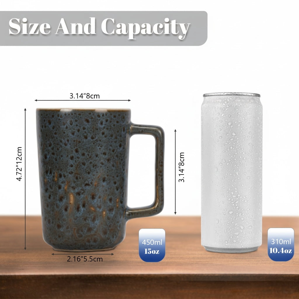 Size: With dimensions of 4.5 x 8.4 x 12.5 cm (approx. 1.8″ x 3.3″ x 4.9″) and a generous capacity of 450 ml (15 oz) Quality Ceramics: Crafted from high-quality ceramic, these mugs are durable, chip-resistant, and designed for everyday practicality and long-term use in any kitchen. Versatile Use: Ideal for daily use or special occasions, these mugs are both stylish and functional, equally at home in your kitchen, office, or as a thoughtful gift for friends, family, or colleagues.