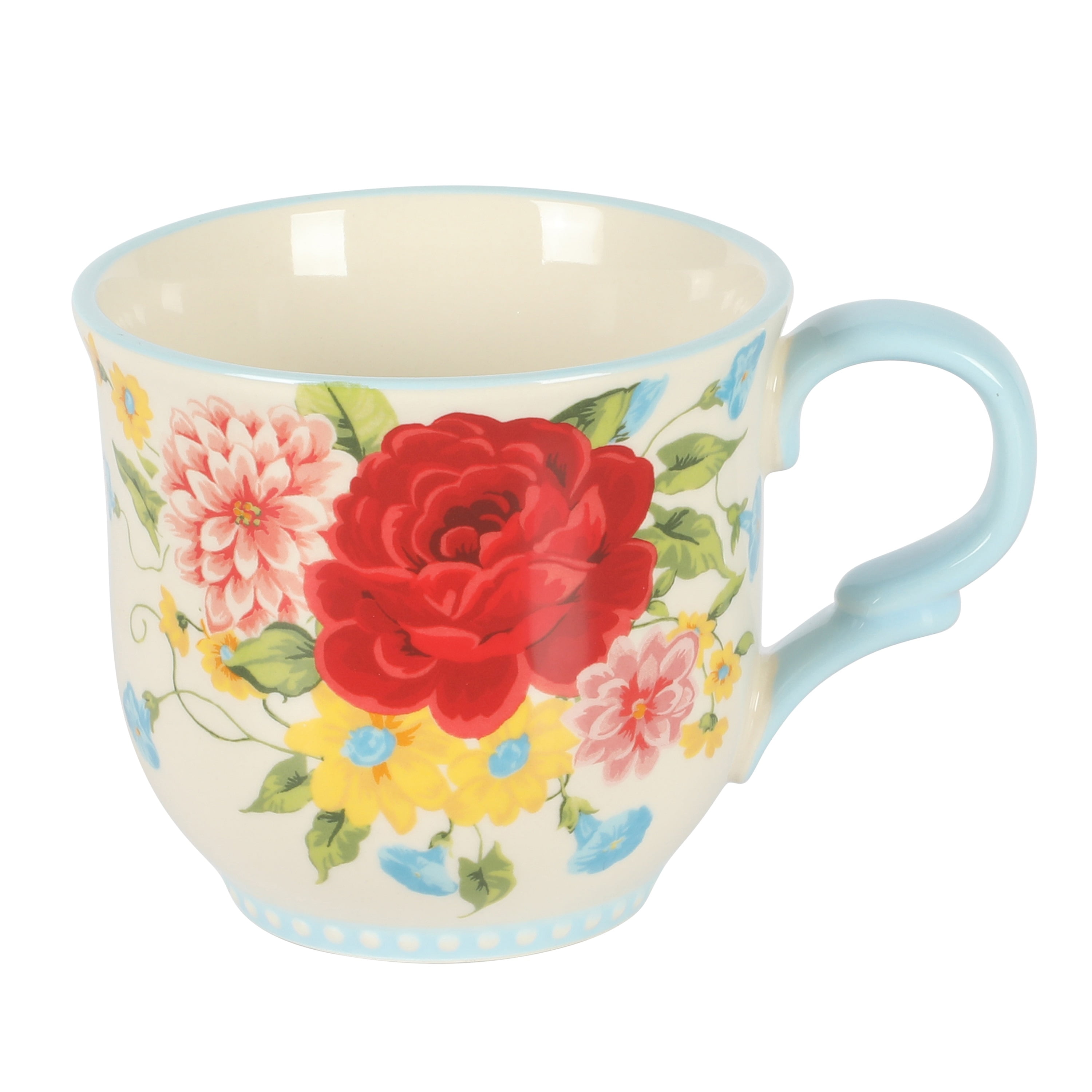 + Free ShippingThe Pioneer Woman Sweet Rose 14.5-Ounce Mug lets you sip in style. Made from durable stoneware, this gorgeous dish is versatile enough for everyday use while maintaining an understated elegance for special occasions. It features a vibrant floral pattern that adds color and life to any tablescape. Make your teatime look cookbook-ready and elevate your serving with this stunning mug. Dishwasher and microwave safe, this mug is easy to clean. Easy to pair with other items in the Pioneer Woman Collection, they also look great when stacked on your shelves or buffet display. The Pioneer Woman Sweet Rose 14.5-Ounce Mug serves up gorgeous colors with a classic styling that is sure to enhance your coffee and tea experience whether you’re sharing meals with friends or by yourself.Meet Ree:Ree Drummond is an author, TV personality, social media phenom, and the woman behind the popular Pioneer Woman lifestyle blog that started it all. She’s also a lover of butter, basset hounds, Ethel Merman, her hunky, cowboy husband Ladd, and their four kids. Her casual country style and delicious recipes have made her a go-to for all things cooking and entertaining.
