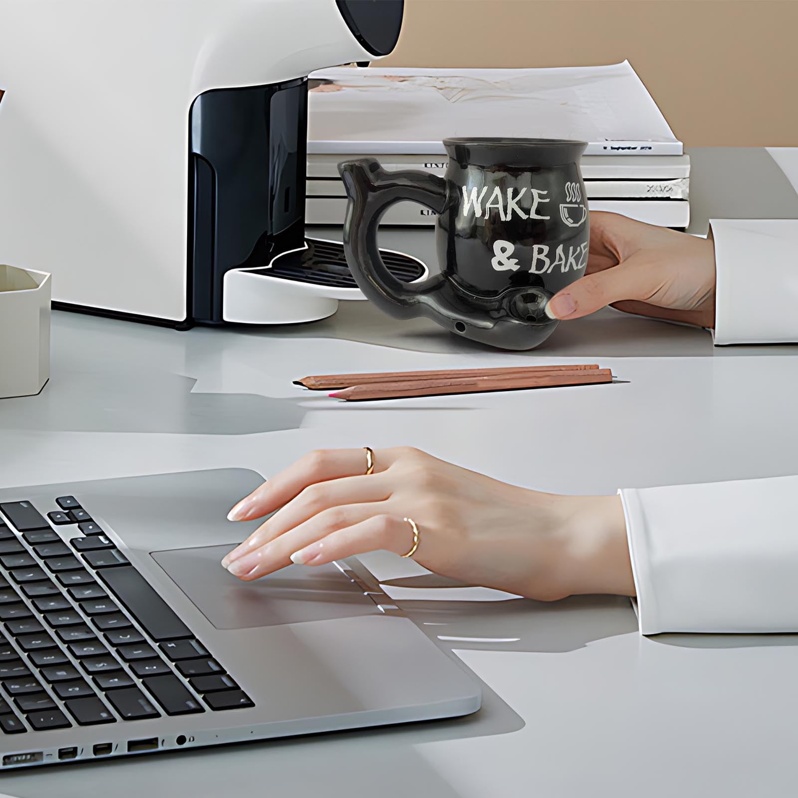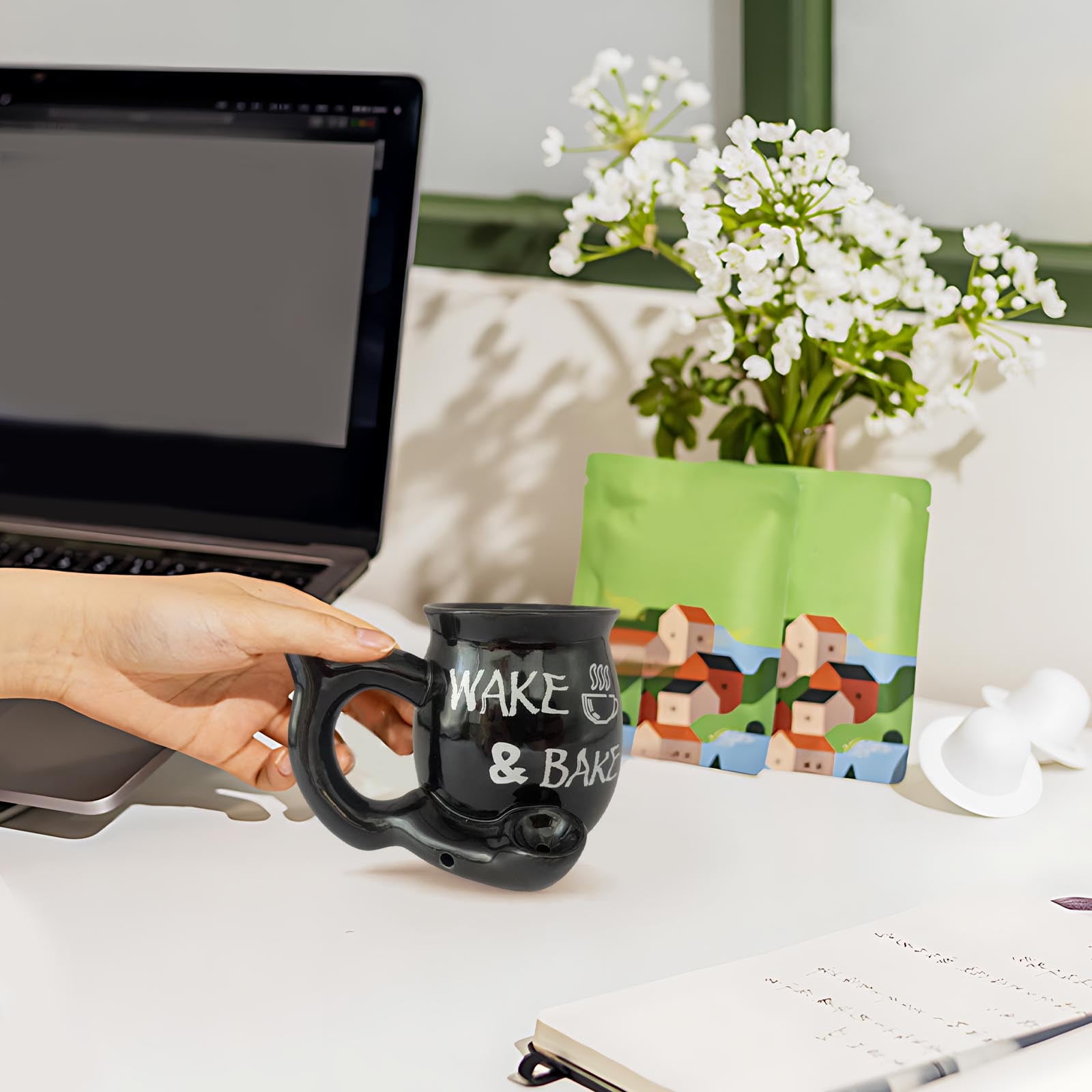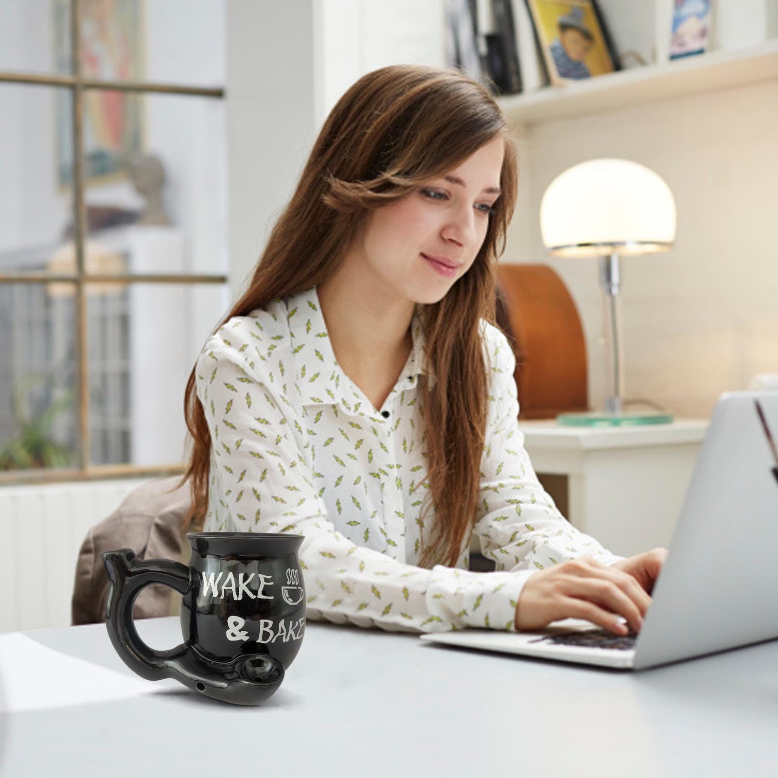 Coffee Mug, Novelties Ceramic Cup Father’s Day and Birthday Party Gift Black Wake Bake Coffee Mug for Birthday Party Halloween Christmas Gift 1xCeramic coffee cup