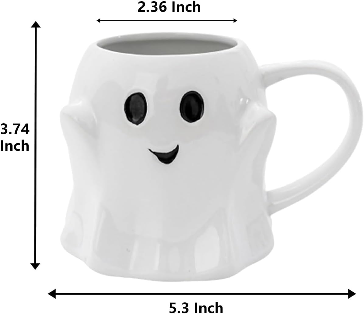 Unique and Novelty 3D Design: This ghost shaped mug is a truly unique and individual addition to your collection. The mug features an 3D ghost pattern with adorable smiling ghost face design, makes the atmosphere more interesting. High Quality Coffee Mugs: Made of high quality ceramic material, this mug is durable and long-lasting. A sturdy, smooth handle that is easy to grip. This Novelty and fun spooky ghost mug is the perfect conversation starter at Halloween parties or gatherings. Versatile Usage: Each of the 3D ghost face cup holds 14 ounces, which is perfectly sized for espresso, tea, coffee, milk, latte, mocha, espresso, cappuccino, hot chocolate, cocoa or any other hot or cold beverage you desire. Novelty Gift: Ideal gift for your friends, families, lovers, relatives even your boss for Halloween, Thanks Giving, Christmas, New Year, Father’s Day, Valentine’s day, birthday or white elephant present. It will be a wonderful gift. Charm Decoration: Perfect for Halloween celebrations, Its bright and spooky design serves as both a practical mug and eye-catching ornament that will beautify your space with vivid design. Whether you’re sipping your morning coffee or enjoying a cozy night in, this ghost mug is sure to bring a smile to your face.