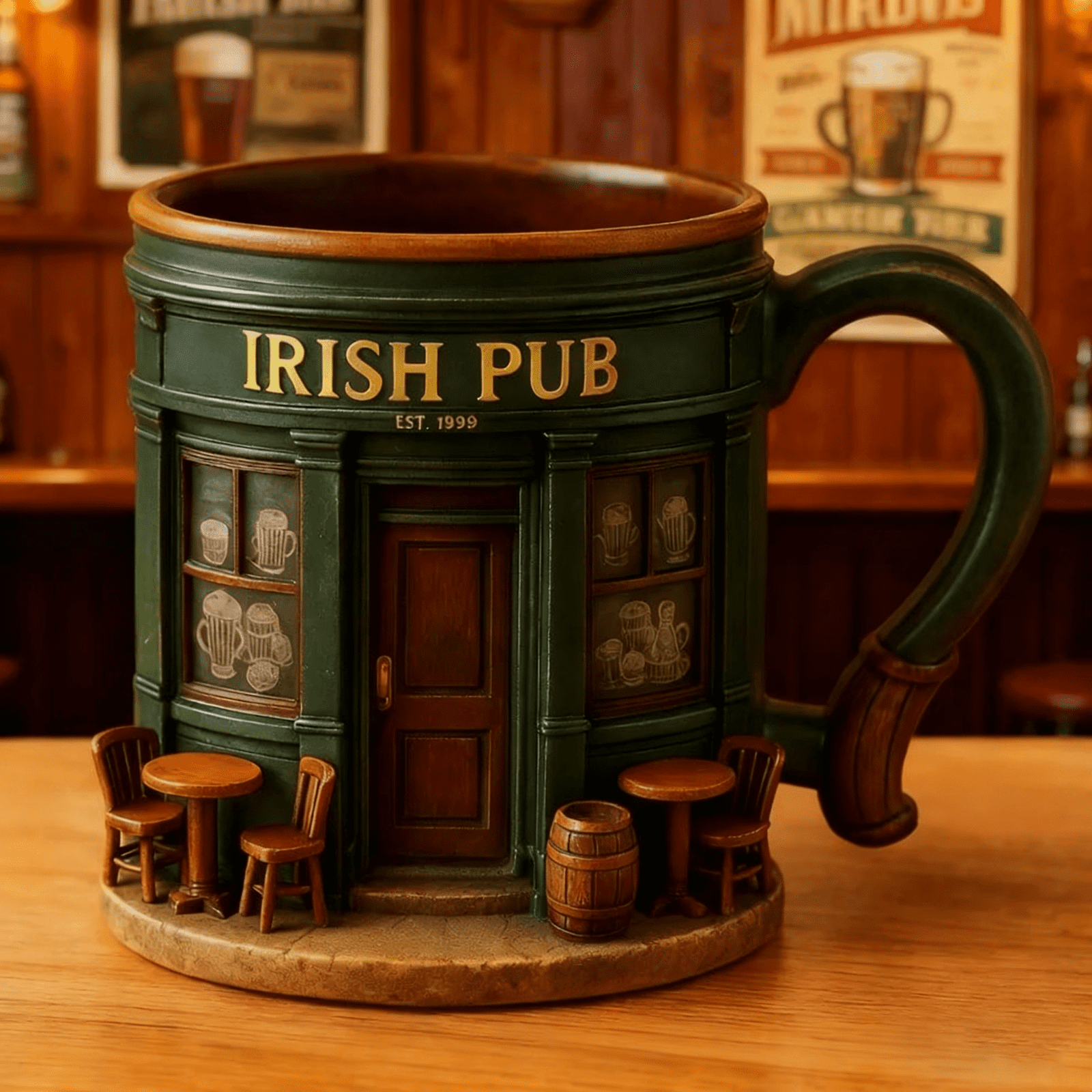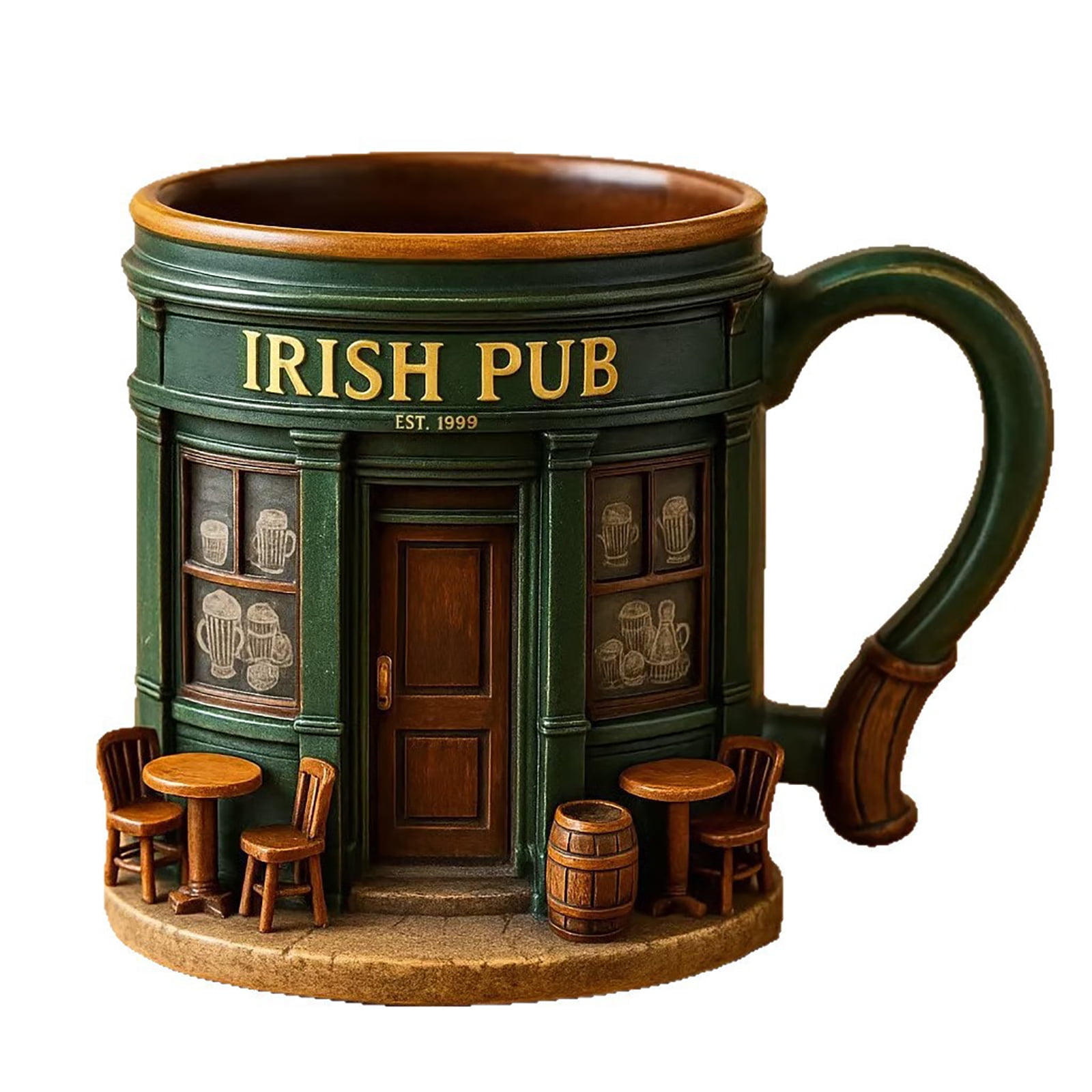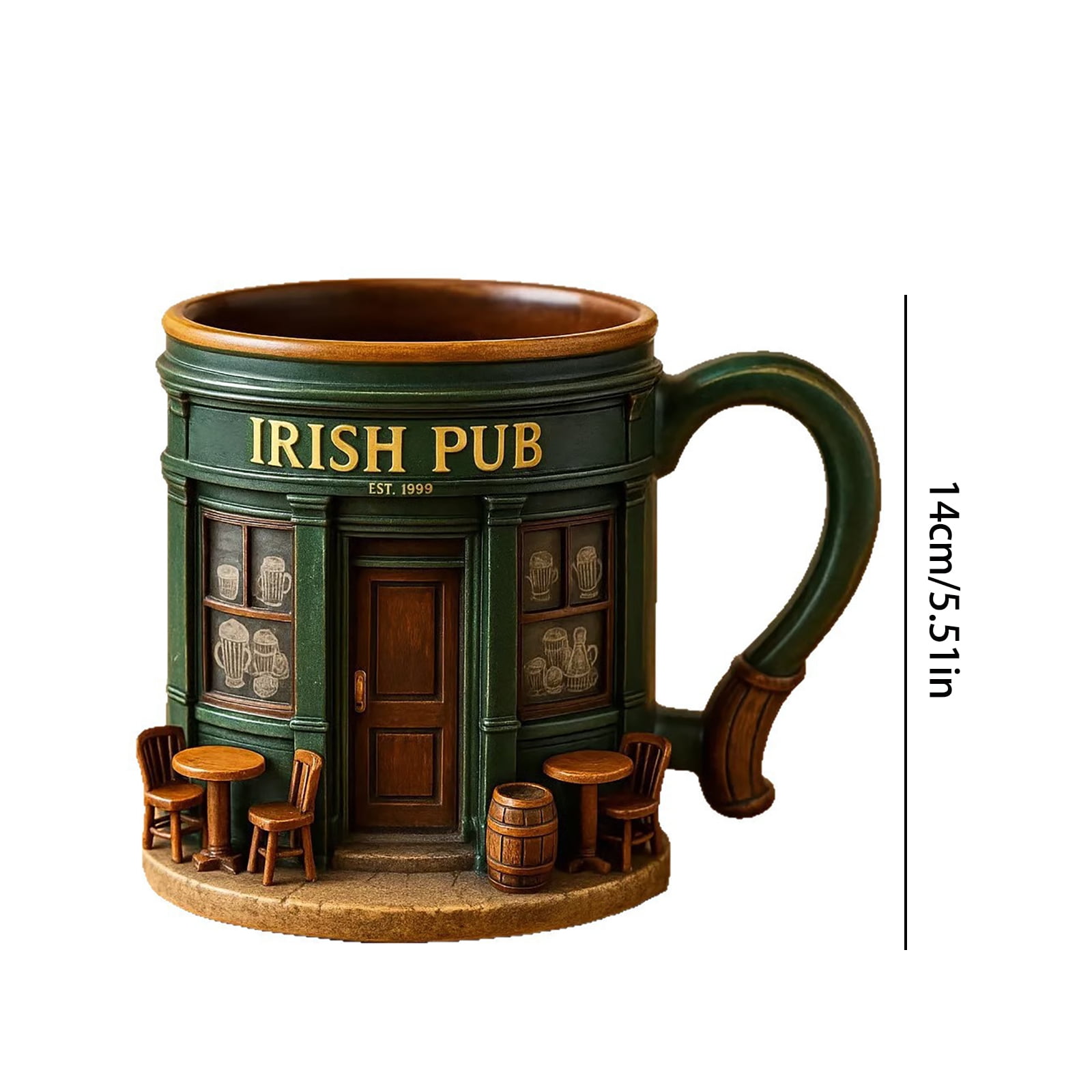 Irish Pub Themed Resin Coated Stainless Steel Coffee Mug for Home Decor, Kitchen Use, and Outdoor Activities, Unique Crafts Ornament Gift Idea, 1x Mug (16 oz)