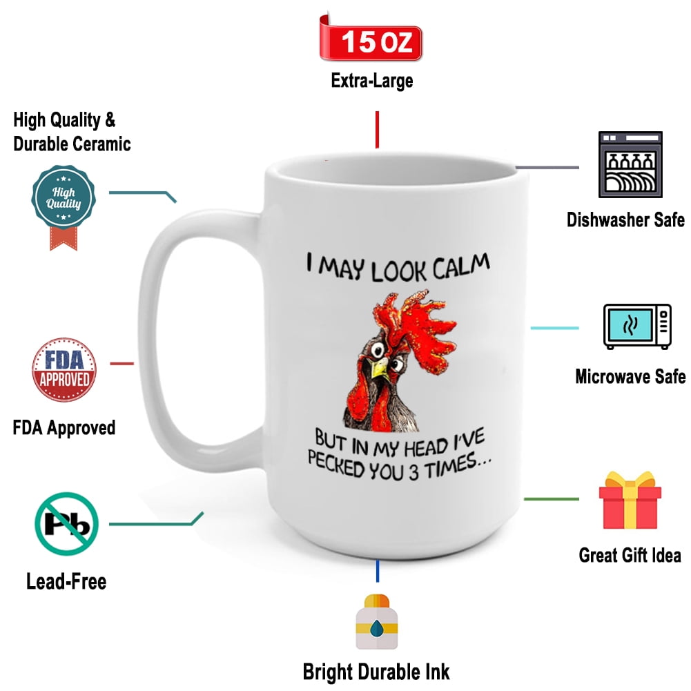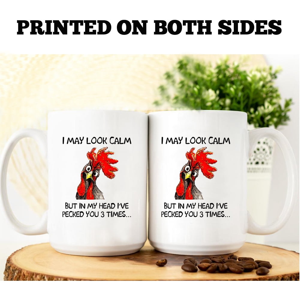 Bring a touch of humor to your daily routine with the Peckish Rooster Coffee Mug. Crafted from high-quality 15 oz ceramic, this durable mug features a bold and colorful rooster design along with a cheeky statement that reads “I May Look Calm But In My Head I’ve Pecked You 3 Times.” Dishwasher and microwave safe, the mug’s permanent color won’t fade, making it a practical and fun addition to any kitchen or office. Suitable for a variety of occasions, including Father’s Day, Christmas, Thanksgiving, and birthdays, this unique mug is sure to ignite a chuckle every time it’s used.