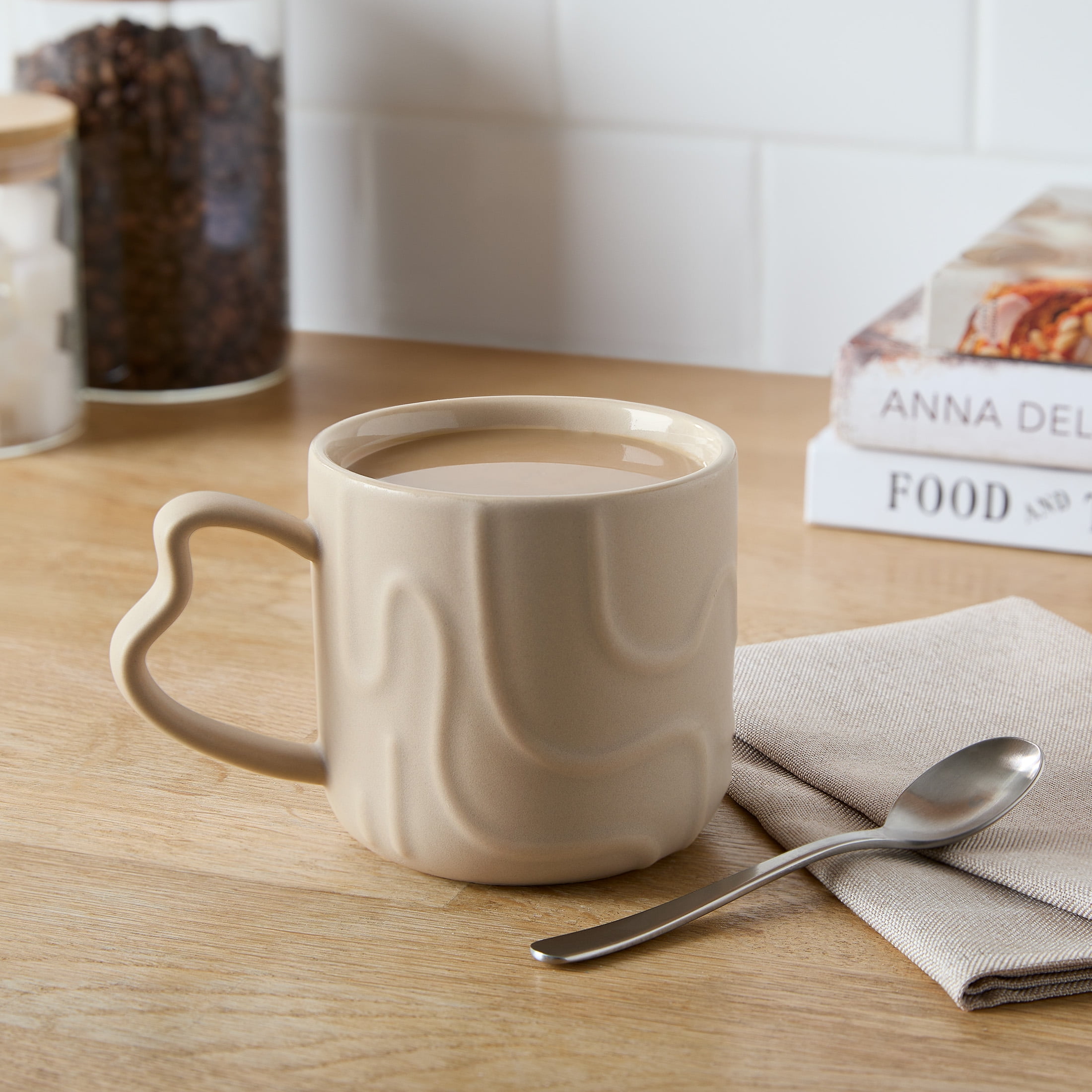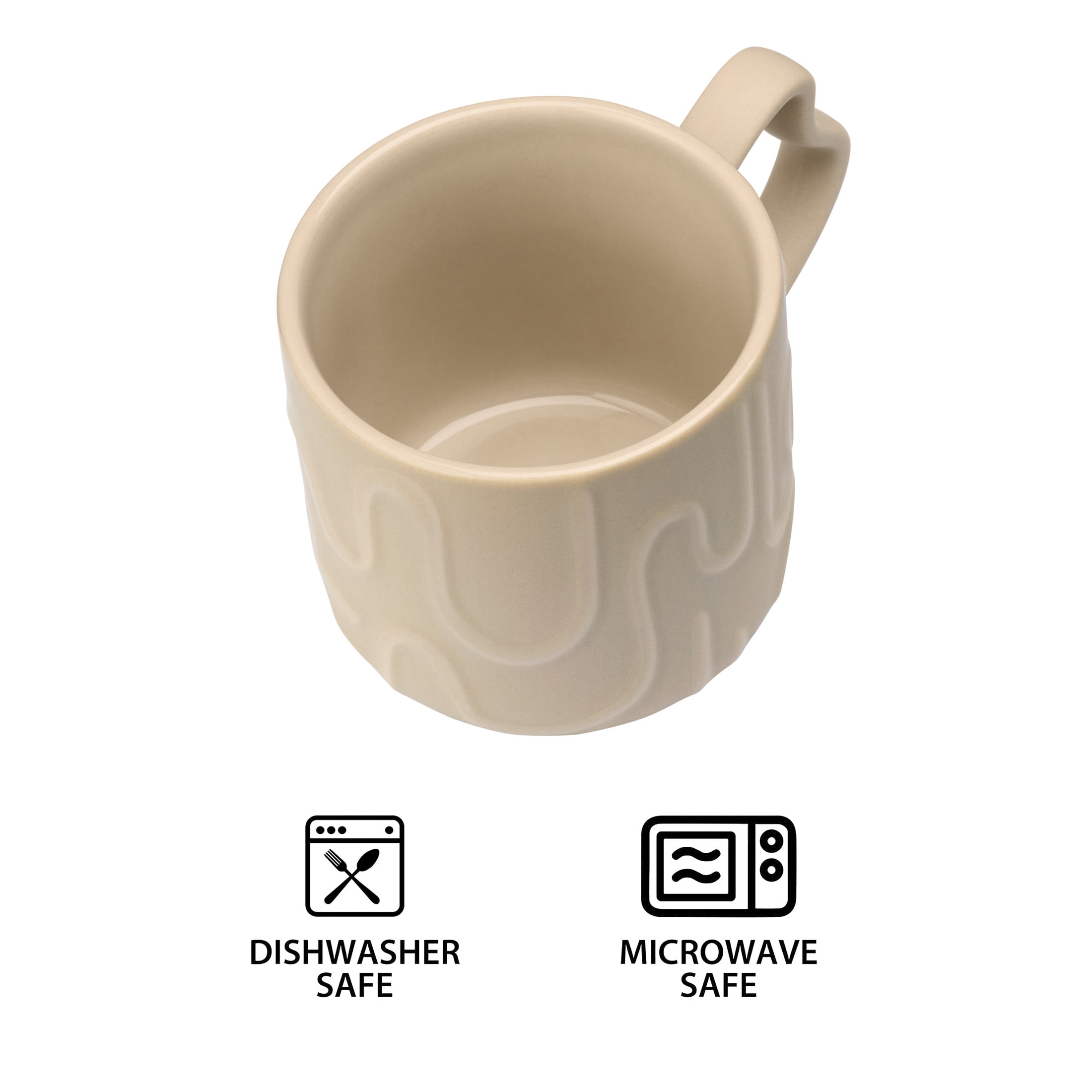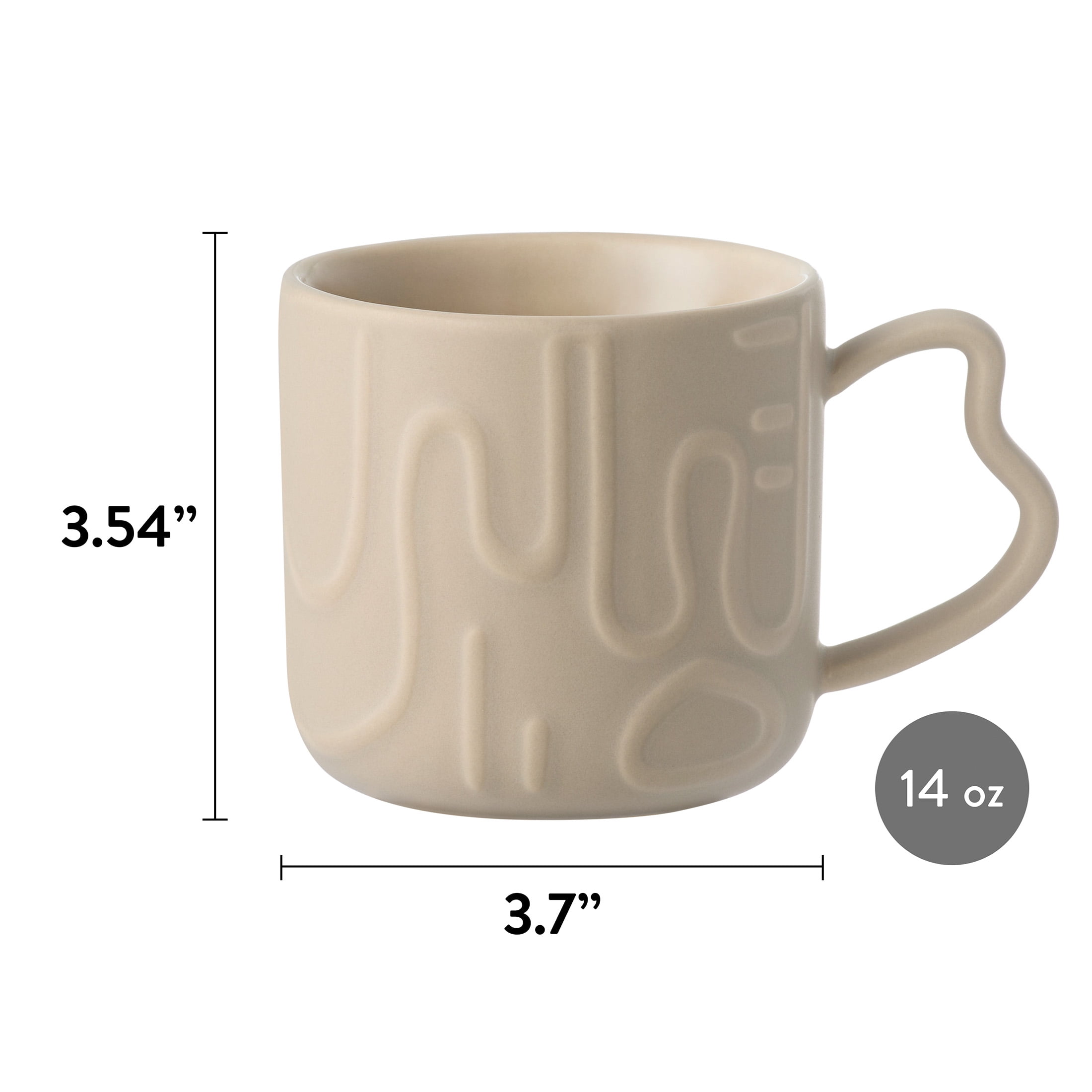 Enjoy your morning coffee or evening tea with the Mainstays 14-Oz Brown Embossed Geometric Pattern Glazed Ceramic Mug, a delightful companion for your daily routine. Designed in solid, light brown with an embossed, geometric pattern and matching handle, this charming mug holds up to 14 ounces of your favorite seasonal or anytime brews, including coffee, tea, punch, cider, and hot chocolate. It’s constructed of 100% sturdy stoneware ceramic with a semi-matte glazed finish on the exterior and a glossy glazed finish on the interior. It’s dishwasher and microwave safe, making cleanup or reheating super easy. The mug may become hot to the touch when microwaved; use caution. Take a little time to enjoy the simple things this fall and year-round with the pleasantly quaint Mainstays Brown Embossed Geometric Pattern Mug.