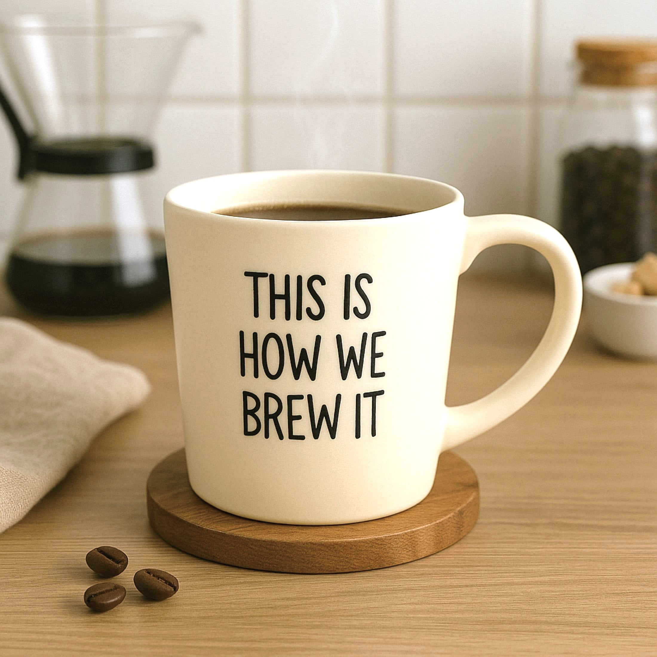 Mainstays 2 Oz Ceramic Espresso Shot Mug features a charming and playful “This Is How We Brew It” design printed in black letters, making it a delightful addition to any coffee lover’s collection. Perfectly sized for a quick shot of espresso, this mug combines practicality with personality. Its compact shape makes it ideal for a pick-me-up at any time of day or as a stylish addition to your kitchen decor. Whether you’re treating yourself to a freshly brewed shot or looking for a fun and thoughtful gift for a coffee enthusiast, this mug is sure to please. Crafted with care, it’s a great way to add a little humor and energy to your daily routine.