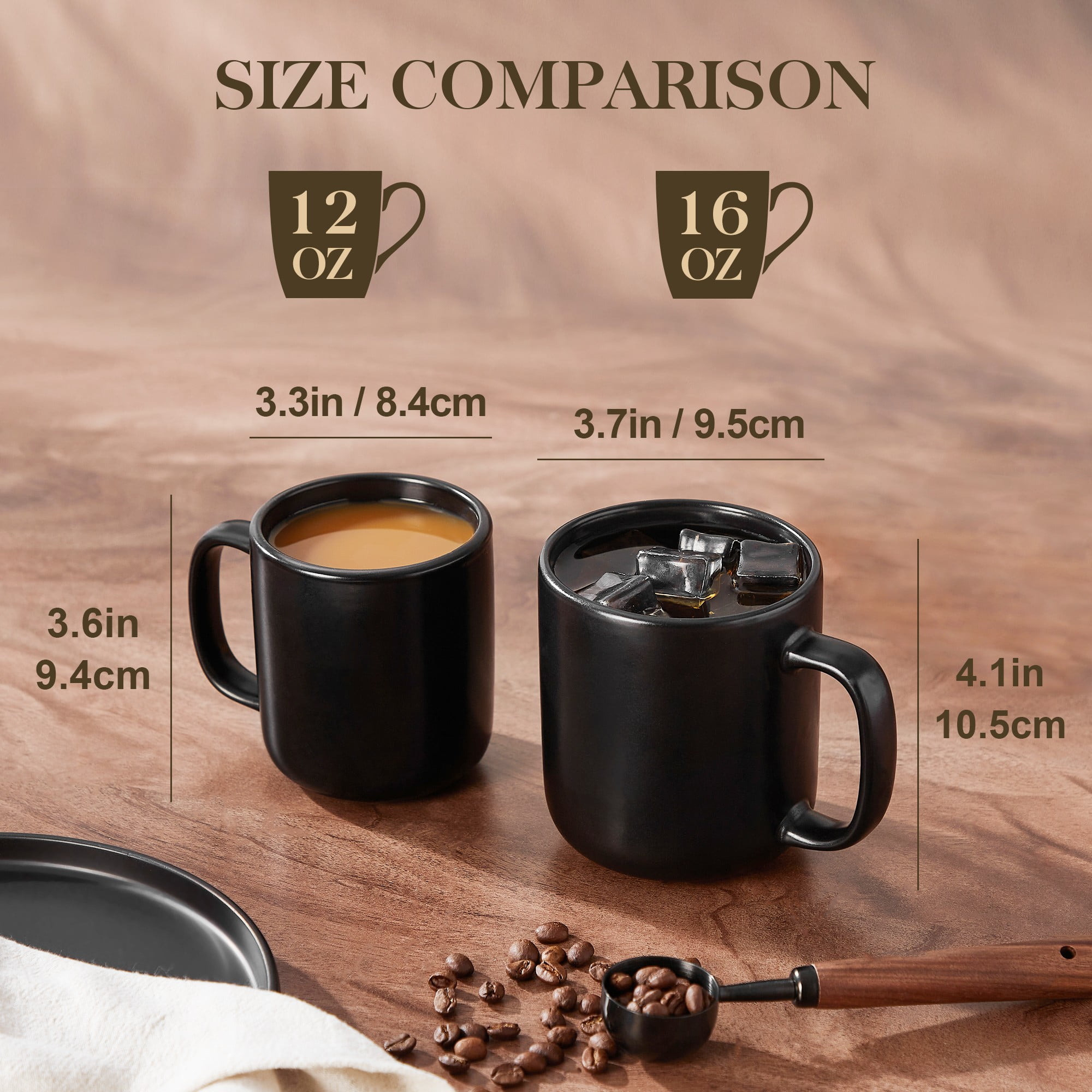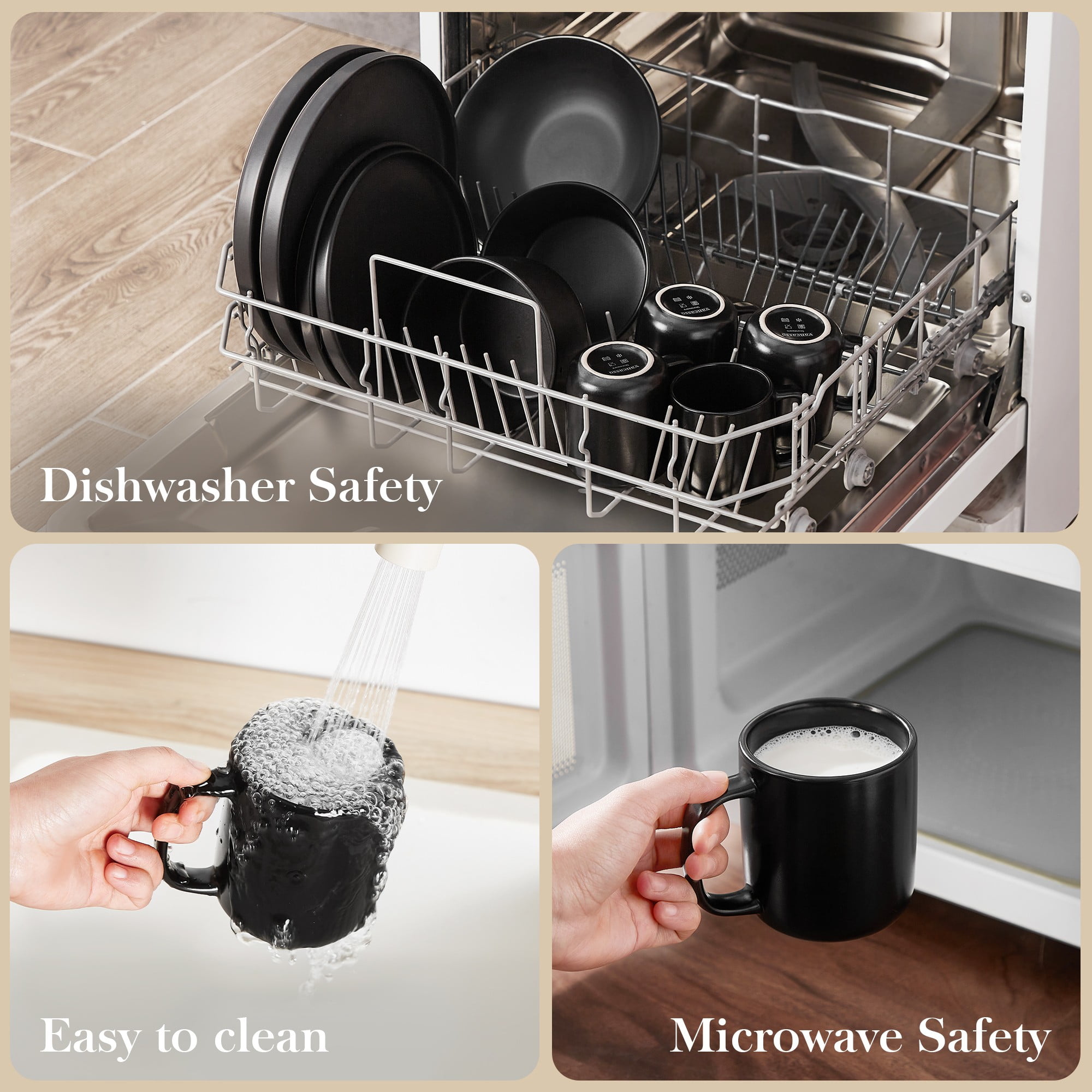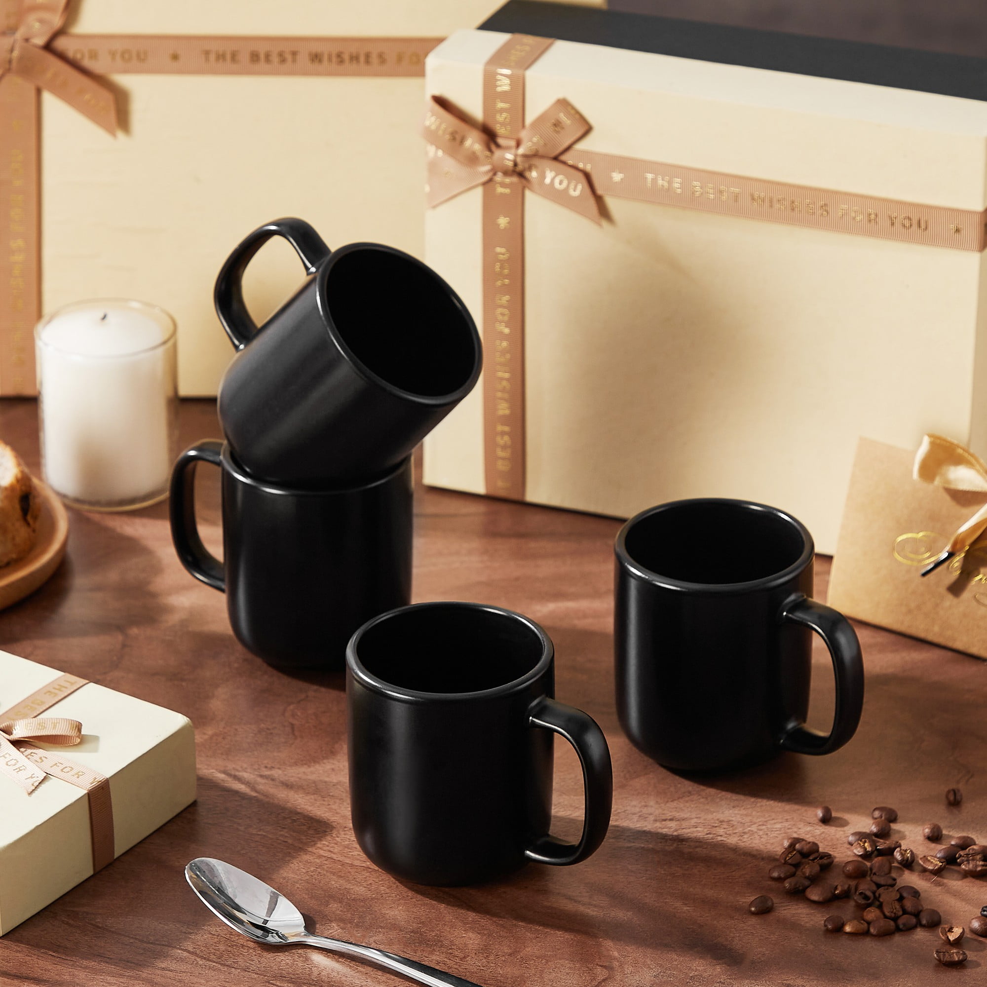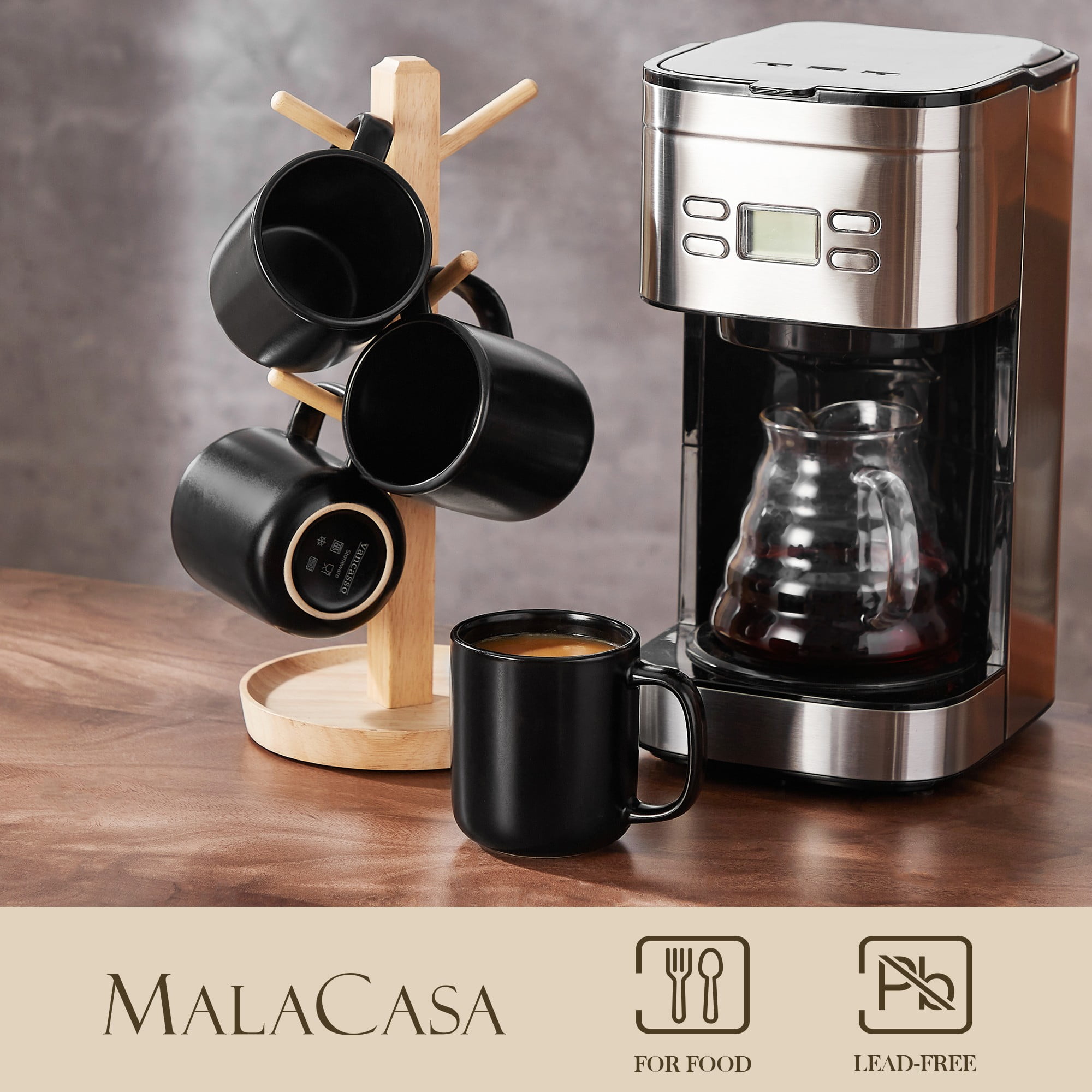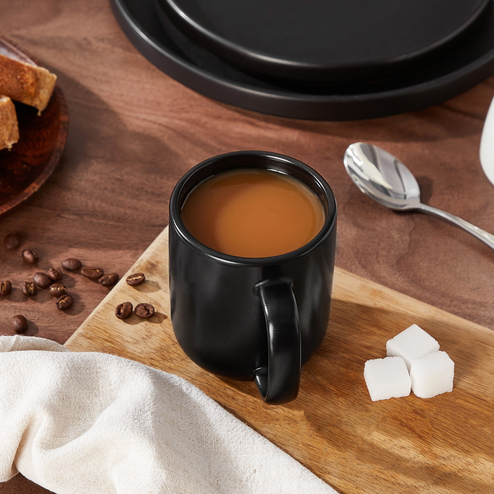 Malacasa Stoneware Coffee Mugs Set, 12 oz Coffee Cups Set of 4, Dishwasher & Microwave Safe, Black