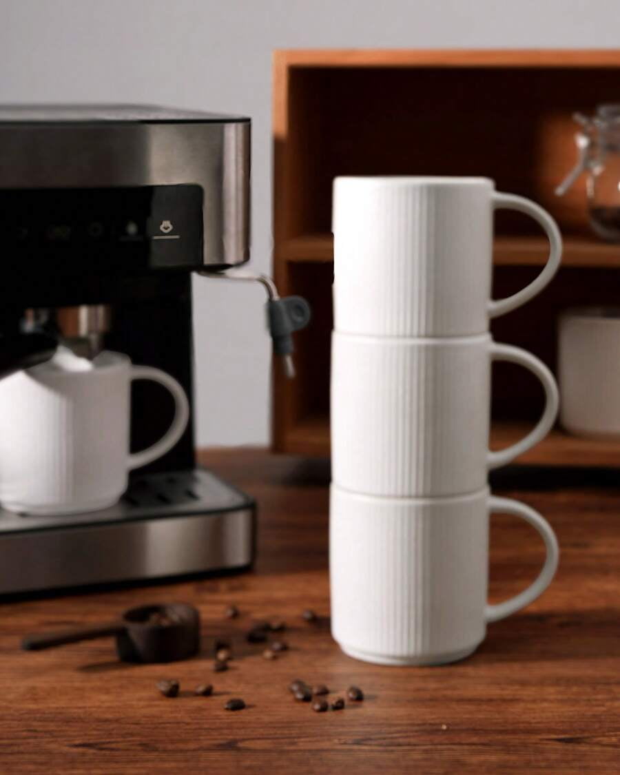 Set of 4 coffee mugs 12 oz capacity Made of ceramic stoneware With handle for comfortable grip Suitable for coffee, tea, cocoa, milk