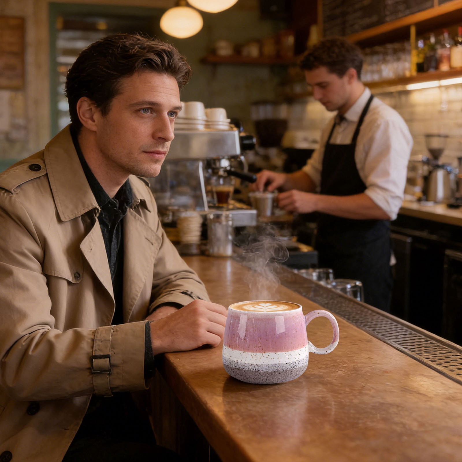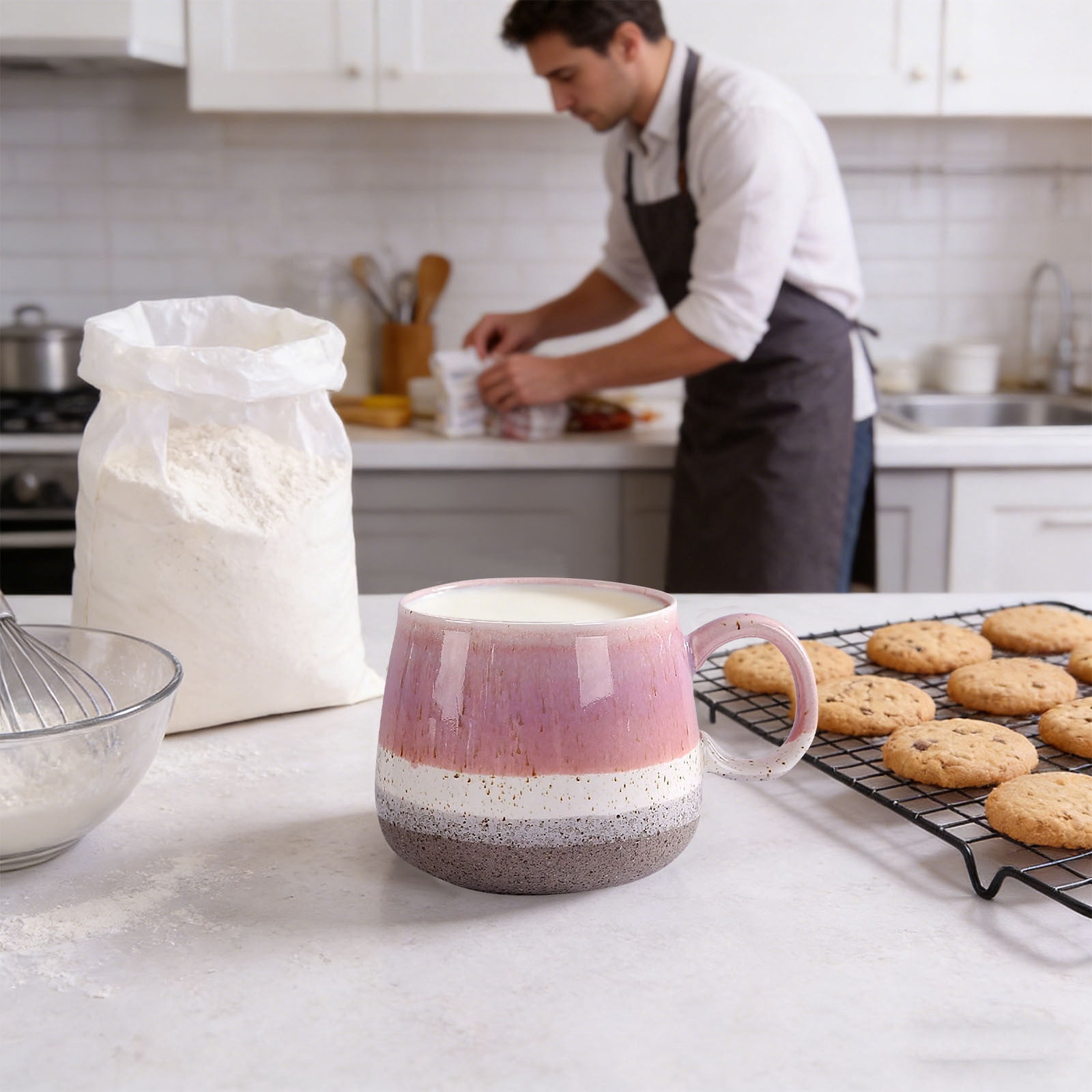【PREMIUM CERAMIC CONSTRUCTION】Crafted from high-quality ceramic, this mug is built to last through daily use without chipping or cracking, offering exceptional durability for both home and office environments. 【GENEROUS CAPACITY】Enjoy your favorite beverages without constant refills thanks to the large capacity design, perfect for coffee lovers, tea enthusiasts, or anyone who appreciates a substantial drink. 【VERSATILE FOR EVERY SETTING】Ideal for a relaxing morning at home, a busy workday at the office, or casual gatherings, this mug seamlessly fits into your daily routine wherever you are. 【ELEGANT KILN-FIRED FINISH】Featuring a beautifully kiln-turned glaze, each mug boasts a unique, sophisticated look that adds a touch of style to your kitchen cabinet or desk, combining function with aesthetic appeal. 【COMFORTABLE ERGONOMIC HANDLE】Designed with a user-friendly handle for a secure and comfortable grip, making it easy to hold even when filled with hot liquids, ensuring a pleasant drinking experience every time.
